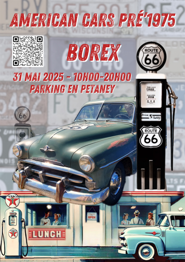 Concentration annuelle de voitures américaines d'avant 1975 La prochaine édition du American Cars Pré'1975 se déroulera le 31 mai 2025 sur le parking en Petaney à Borex dans le canton de Vaud en Suisse. Cette concentration annuelle est réservée à toutes les voitures américaines produites avant 1975. Venez découvrir des trésors et partagez votre passion avec d'autres passionnés. Les organisateurs se réservent le droit d'accepter, sur inscription préalable, d'autres véhicules d'autres provenances pourvu qu'ils soient très anciens. Un espace de jeux sera à disposition des enfants. Restauration Foodtruck et stands sur place. Entrée gratuite. Pour tout renseignement, prière de contacter directement et uniquement l'organisateur Happy Déco via leur site.