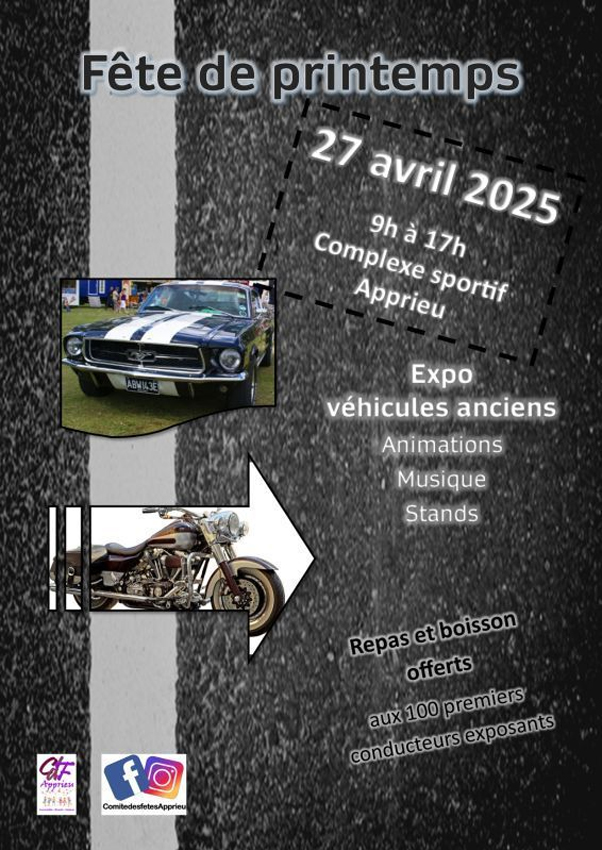 Exposition de véhicules anciens Le Comité des Fêtes d'Apprieu organise une exposition de véhicules anciens le dimanche 27 avril 2025 dès 09h00 au complexe sportif d'Apprieu (38). Cette concentration est ouverte à tous les véhicules anciens : voitures, motos, tracteurs) d'avant 1990. Animations, musique et stands.. Repas et boisson offerts aux 100 premiers conducteurs exposants.